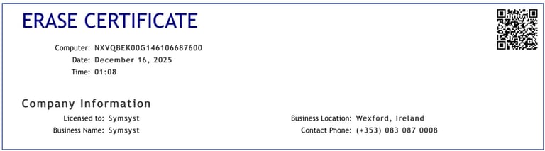 Certified erasure ensures devices can be reused, transferred or donated without exposing residual data, supporting secure and responsible hardware lifecycle management.